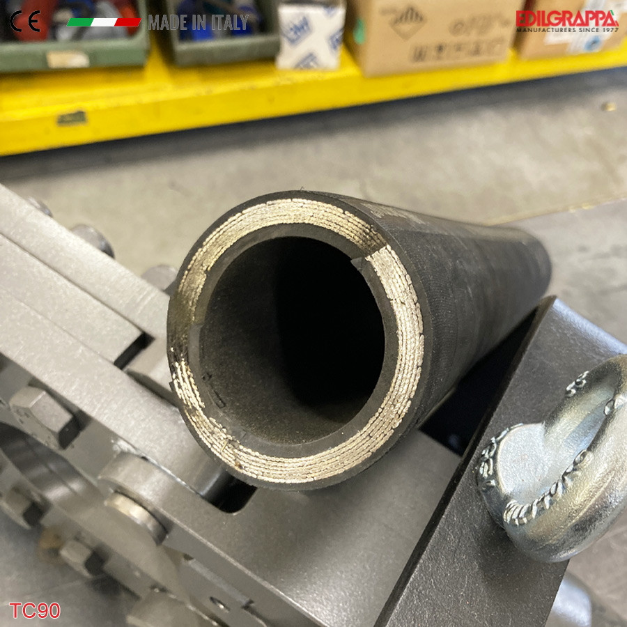 Máy cắt cáp bọc thép dùng thủy lực Ø 90 mm Edilgrappa TC90 made in Italy, chuyên dụng cho các ứng dụng công nghiệp nặng. Máy có khả năng cắt cáp Ø 90 mm, tạo lực cắt 550 kN (56,1 tấn) với xy lanh tác động kép. Phù hợp cho thi công lưới điện, viễn thông và các ngành công nghiệp hạ tầng.