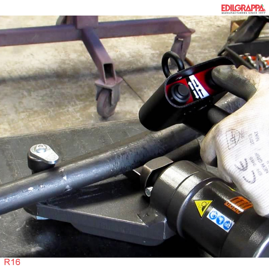 Máy uốn nắn cốt thép thủy lực phi 20 Edilgrappa R16 made in Italy, máy nắn thẳng thép thủy lực vận hành bằng bơm thủy lực rời 400 bar. Khả năng uốn tới Ø 20 mm, ứng dụng cho công việc liên tục tại nhà máy công nghiệp, công trường, xưởng gia công cốt thép và bảo trì kết cấu. Phân phối bởi Unicom JSC
